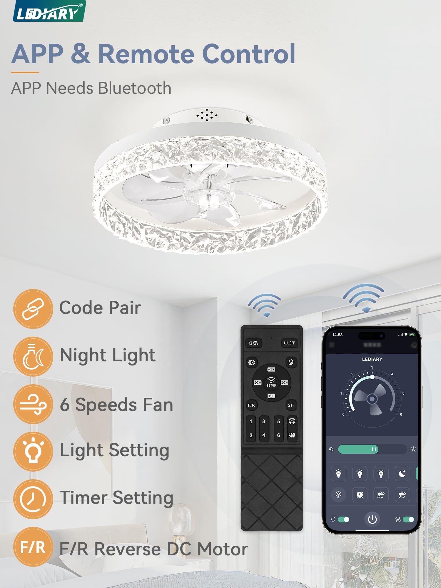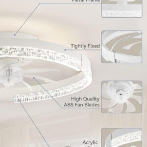 Color:White Electric fan design:Ceiling Fan Power Source:DC Style:Modern Product Dimensions:19.7″D x 19.7″W x 5.7″H